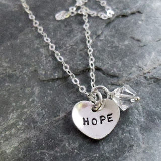 Charlotte won a free personalised item of her choice (up to £16.99) and she chose a Sterling silver necklace with a heart charm. She wanted the word 'HOPE' stamped on and added a simple clear crystal birthstone.